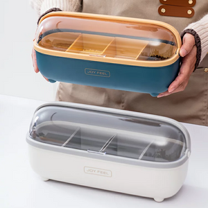 Keep your spices neatly organized and easily accessible with the Minimalist 4-Compartment Spice Box with Spoons. Designed with a clear, oval Nordic-inspired body, this elegant storage solution allows you to quickly identify your spices while keeping them fresh and dust-free. Perfect for modern kitchens, this versatile organizer makes cooking and seasoning simple, stylish, and efficient.