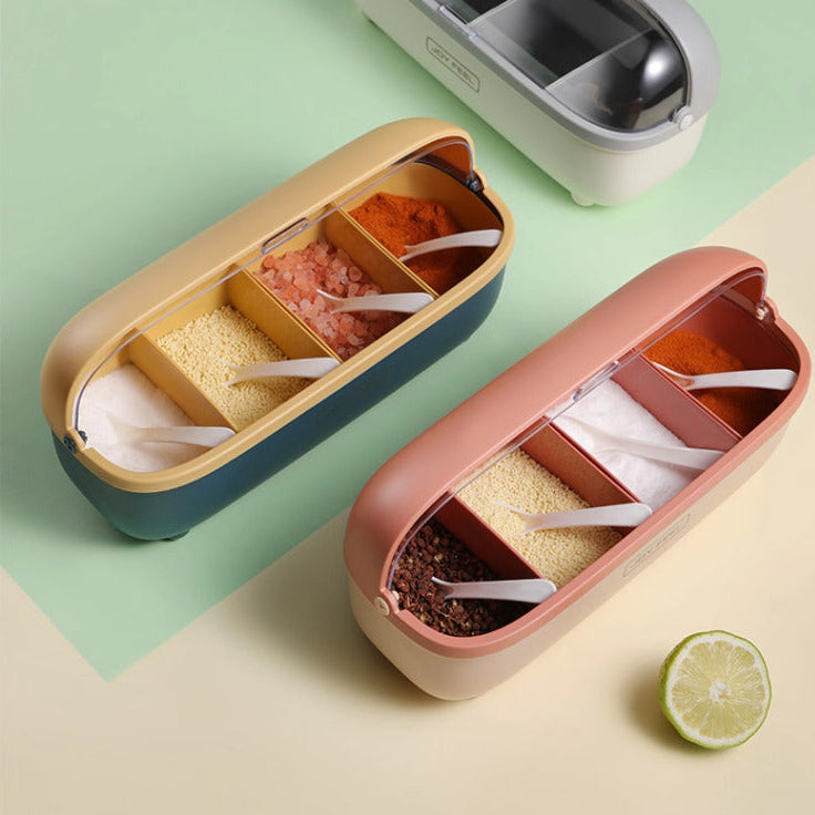 - 4 separate compartments to organize multiple spices, salts, or condiments.