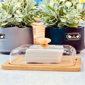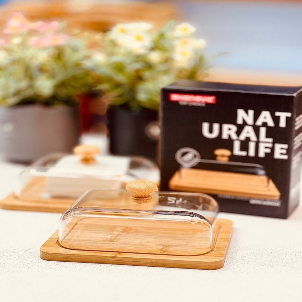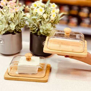 This multifunction wooden keeper with a glass lid is both stylish and practical. Designed with a square wooden tray and a clear glass cover topped with a rounded wooden handle, it’s ideal for storing butter while also serving salads, appetizers, or desserts. Its blend of natural wood and modern glass makes it a timeless addition to any kitchen or dining table.