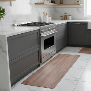 - Two-piece set: One standard mat and one runner to cover high-use areas like sinks and stoves.