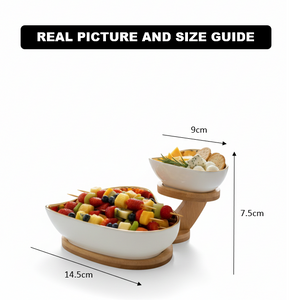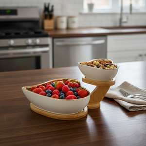 Serve fruits, snacks, nuts, or condiments in style with the TwinHearts Ceramic Bowl Stand. This 2-layer set features two heart-shaped ceramic bowls elegantly arranged on a sturdy wooden stand, combining charm with functionality. Its romantic design makes it perfect for home dining, tea time, parties, or gifting, while the durable ceramic ensures longevity and easy cleaning.