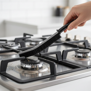 - Cleaning stove edges, backsplash seams, oven door tracks, and tight crevices