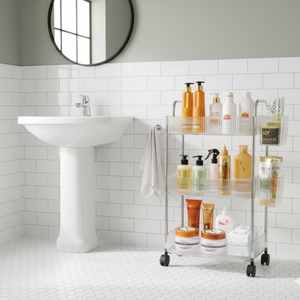 • Efficient Storage Space: Three spacious tiers with raised edges prevent items from slipping off.