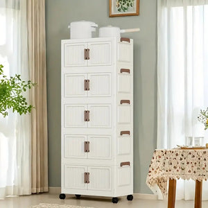 The FlexiStack Moveable Storage System is a versatile, space-saving organizer built to make home storage easier and smarter. Crafted from thickened polypropylene plastic, these durable foldable cabinets are designed for heavy-duty use while keeping your items clean and protected. With non-transparent doors for a neat and tidy look, and 360° wheels included as standard, this system ensures mobility, durability, and clutter-free organization for any space.