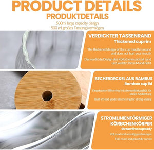 1: The glass cup is made of borosilicate glass material and can be used safely for a long time. The glass cup can withstand temperature changes from -55 ° C to 100 ° C; This lid is made of bamboo and is very safe