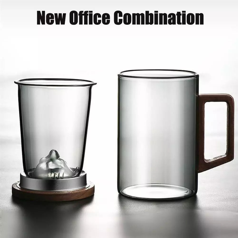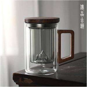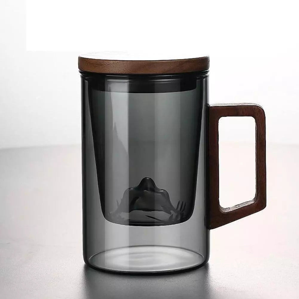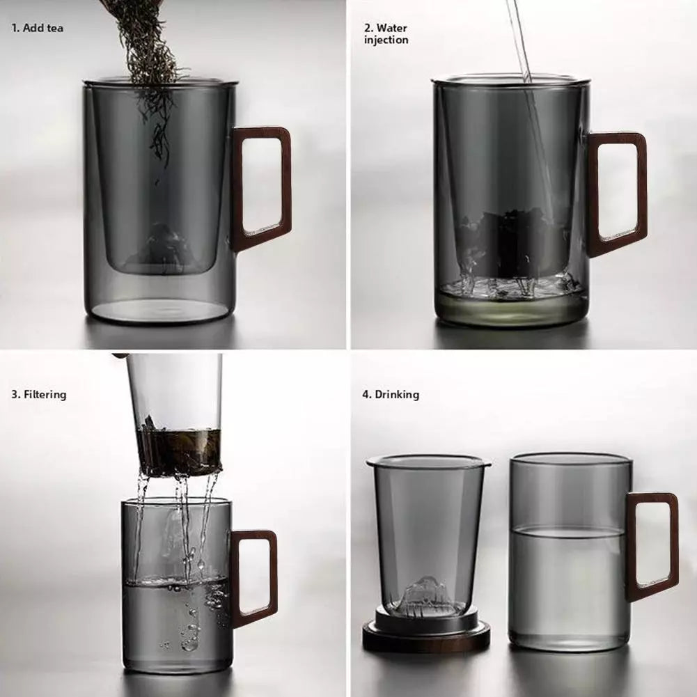 Elevate your tea-drinking experience with our elegant Tea Infuser Cup. This stylish glass cup features a built-in removable infuser, allowing you to brew loose leaf tea to perfection. The double-wall insulation keeps your tea hot while protecting your hands from the heat. The wooden lid adds a touch of natural warmth and keeps your tea fresh. Built-in Infuser: Conveniently brew loose leaf tea.