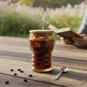 The SipNSeal Ribbed Glass Tumbler is designed to elevate your daily hydration with style, comfort, and convenience. Crafted from premium high-borosilicate glass, it features a modern ribbed texture for a perfect grip and a natural wooden lid with an airtight silicone seal to keep your drinks fresh and spill-free. Paired with a reusable straw, it’s ideal for iced drinks, smoothies, coffee, detox water, and more—perfect for home, office, cafés, travel, or on the go.
