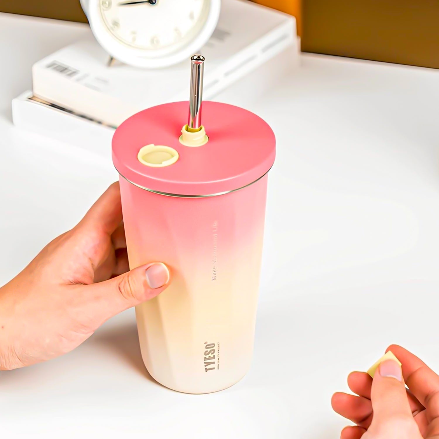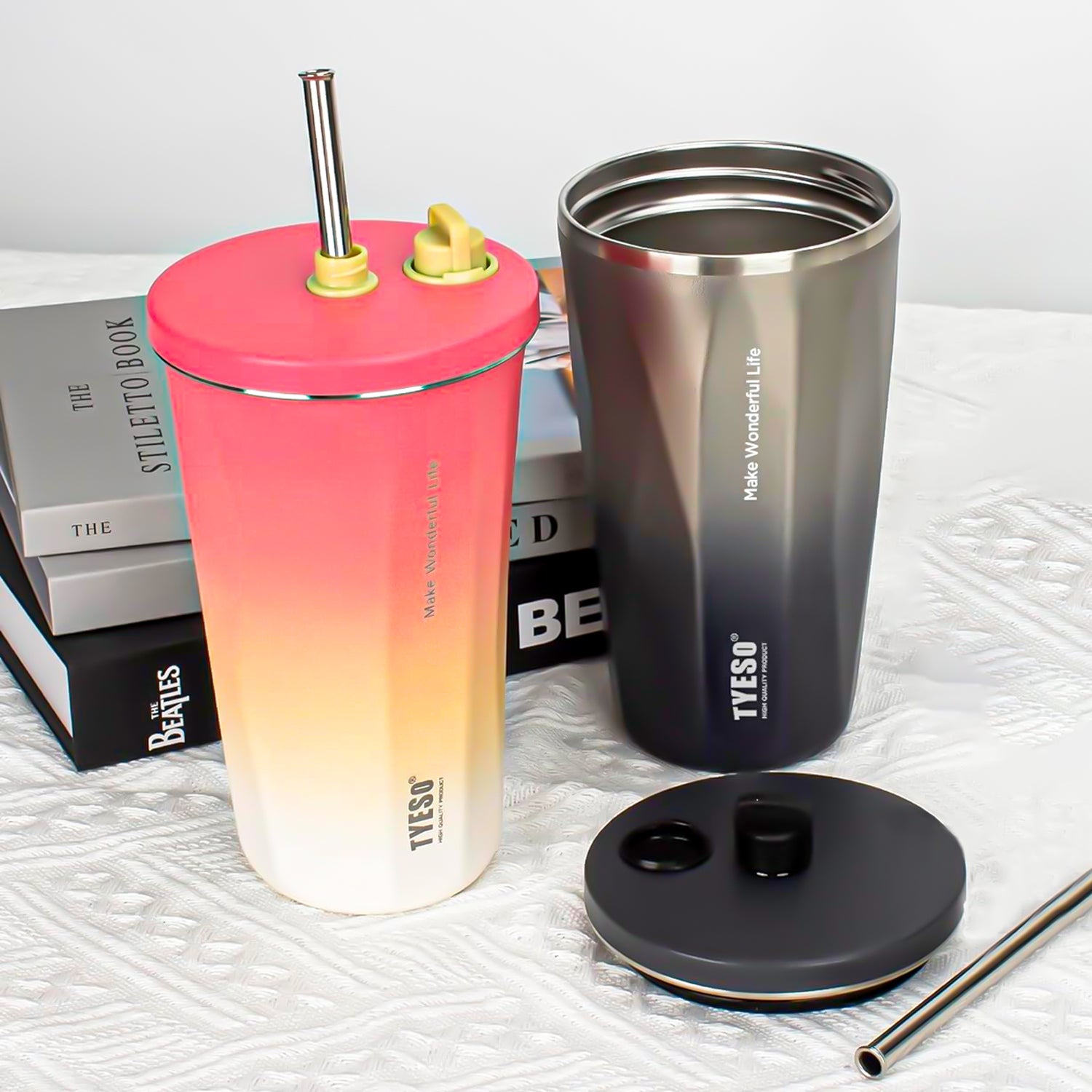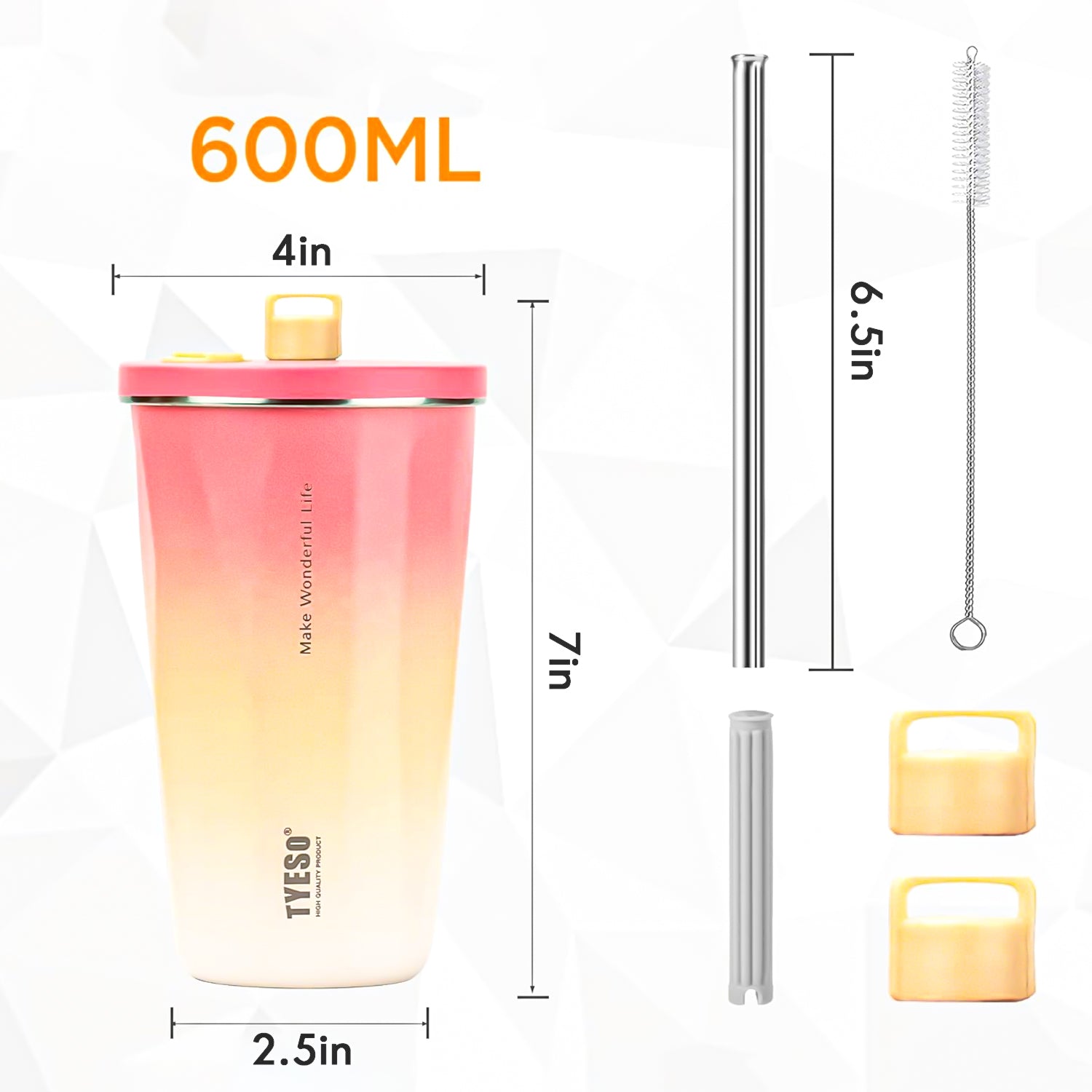 TYESO® Vacuum Insulated Tumbler with Pop-up Steel Straw (600ml) (TS-8848B)