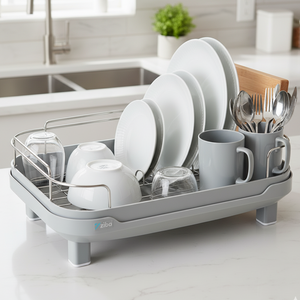- Design: Single-layer rack with drainer for efficient drying; Designed for plates, bowls, cups, and utensils
