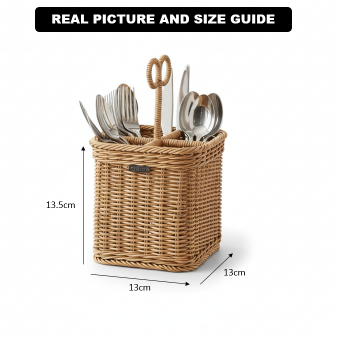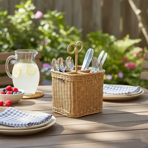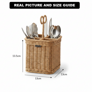 Bring artisanal charm and practical organization to your kitchen, desk, or vanity with the Woven Handmade Cutlery Holder (51078) by Ziba. Expertly crafted to look like natural woven materials, this lightweight and durable holder is actually made from high-quality plastic (PP/HDPE), combining the beauty of handmade textures with the resilience of modern materials. Its hanging design saves counter space while keeping your essentials accessible and stylishly displayed.