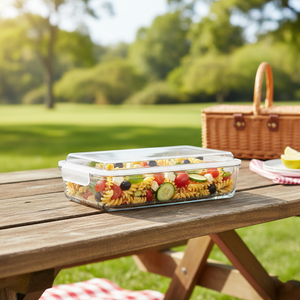 - Glass body + plastic lid with silicone seal ensures airtight and food-safe storage.