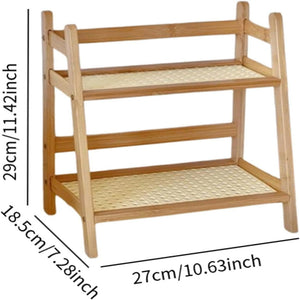 Elevate your organization with the sophisticated 2-Tier Countertop Bamboo Shelf. This meticulously designed shelf offers layered storage, transforming cluttered surfaces into neat, functional display areas. Crafted from sustainable bamboo, its unique "stratum" design blends natural elegance with practical efficiency for any room.