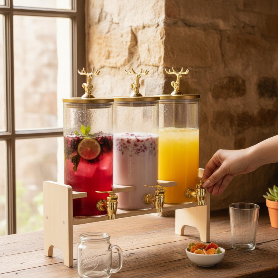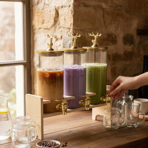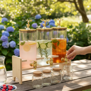 Add a touch of rustic elegance to your kitchen with the Antler-Topped Dispenser 3-Piece Set for both style and functionality, each dispenser features a unique antler-inspired handle, an airtight lid to preserve freshness, and a sturdy bamboo stand for stability. With a capacity of 1850 ml per dispenser, this set is perfect for cereals, dry fruits, or snacks, bringing convenience and sophistication to your countertop.