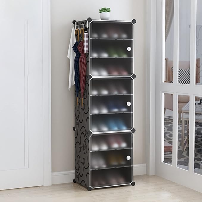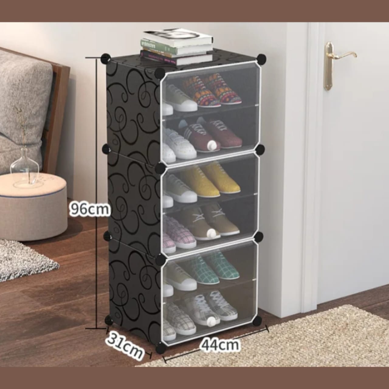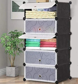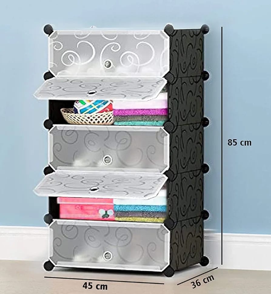 The image shows a DIY plastic storage cabinet, available in 2, 3, 4, and 5 layers. It is made of high-quality plastic and is durable, waterproof, and easy to clean.