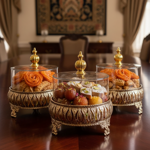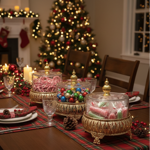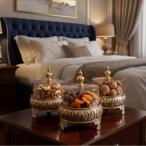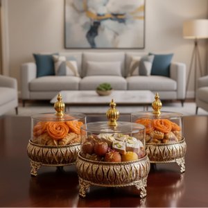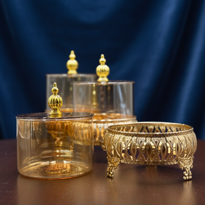 Exquisite 3-Piece Golden Base Glass Jars with Lid