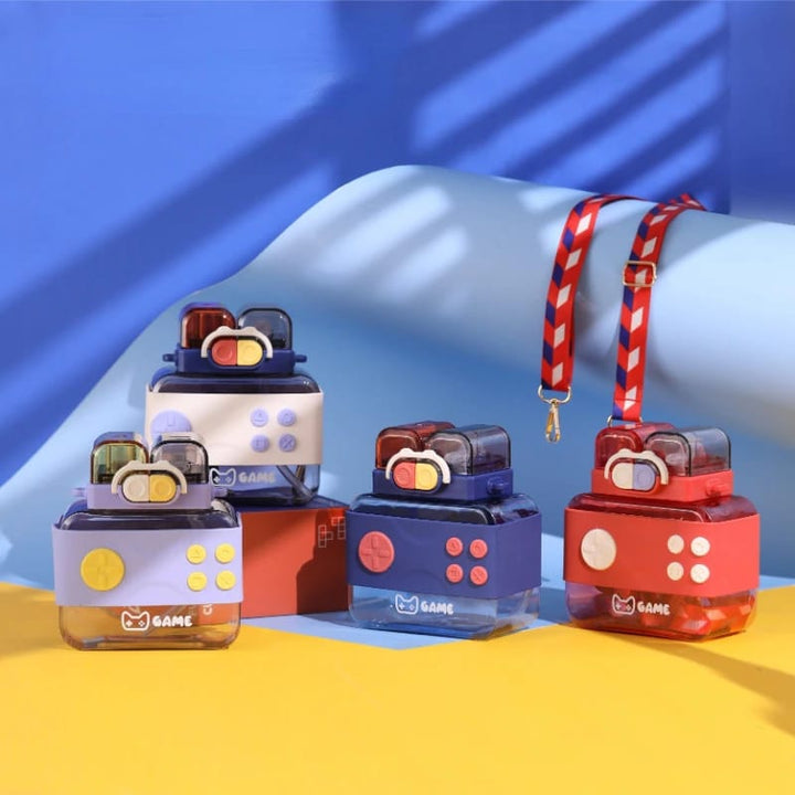 The Gamepad Water Bottle 750ml is a uniquely designed water bottle that combines functionality with a touch of fun gaming aesthetic. Here's a description: