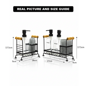 The Glass Liquid Dispensers with Stand and Sponge by Limon is a practical and elegant countertop solution designed for everyday kitchen use. Available in Single and Twin variants, this set features premium glass soap/liquid dispensers paired with a sturdy metal stand — ideal for keeping dishwashing liquid, hand soap, or sanitizer neatly organized. The included sponge holder further enhances convenience, helping you maintain a tidy, efficient, and hygienic sink area. Its compact, modern design fits seamlessly into any kitchen décor while reducing clutter and improving accessibility.