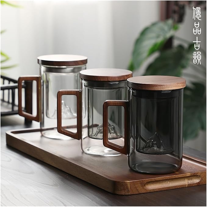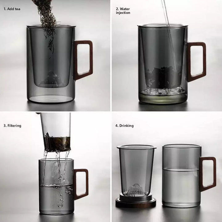 Elevate your tea-drinking experience with our elegant Tea Infuser Cup. This stylish glass cup features a built-in removable infuser, allowing you to brew loose leaf tea to perfection. The double-wall insulation keeps your tea hot while protecting your hands from the heat. The wooden lid adds a touch of natural warmth and keeps your tea fresh. Built-in Infuser: Conveniently brew loose leaf tea.