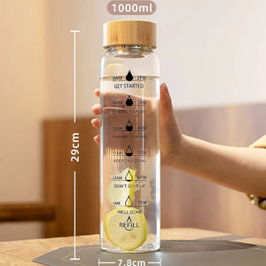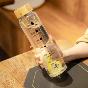 HydraMark Glass Bottle with Bamboo Lid & Time Marker