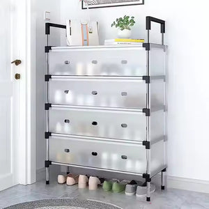 The Modern Multi-Layer Shoe Storage Rack with Dustproof Cover & Handles is a sleek and durable solution for organizing shoes, tools, and everyday items. Made from 16mm galvanized steel pipes and high-quality PP plastic, this foldable and detachable rack is both functional and space-efficient. Whether placed behind doors, in living rooms, or bathrooms, it keeps your essentials dust-free, organized, and easy to access. Available in 3, 4, and 5-layer sizes to match your space and needs.