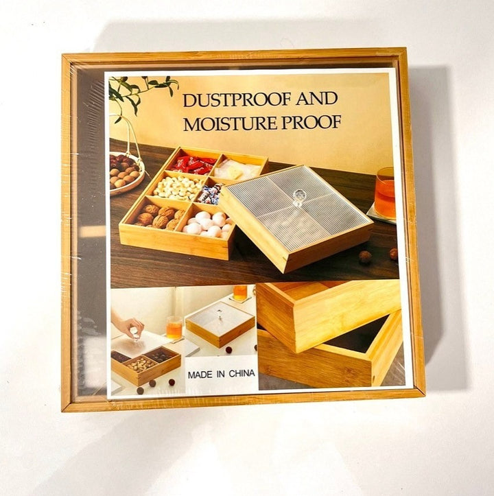 Keep your snacks fresh and organized with this Moisture-Proof Wooden Snack Tray featuring a transparent lid for easy visibility. Designed with premium-quality wood, this elegant storage box is perfect for dry fruits, candies, nuts, chocolates, and other snacks. The airtight, dust-proof, and moisture-resistant lid ensures that your snacks remain fresh for longer. The crystal knob handle adds a touch of sophistication, making it a perfect addition to your kitchen or dining table.