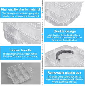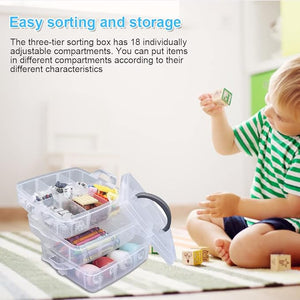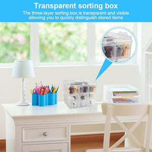 - [High-quality plastic sorting box] - The 3-layer plastic sorting box is made of plastic material, which is durable, odourless, safe, dustproof and durable. Each layer of the sorting box can be stacked or separated for easy storage, sorting and use.