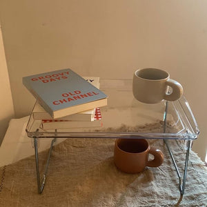 plastic and crystal-clear, this stand is both practical and aesthetically pleasing.