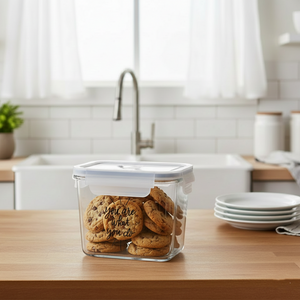 - Compact rectangular shape fits efficiently in pantry or refrigerator shelves.