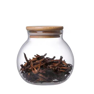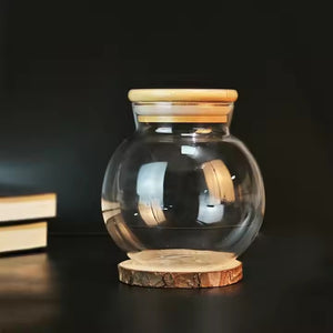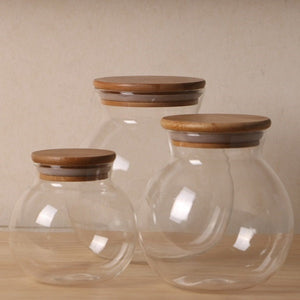 Round Airtight Glass Display Jars with Wooden Lids