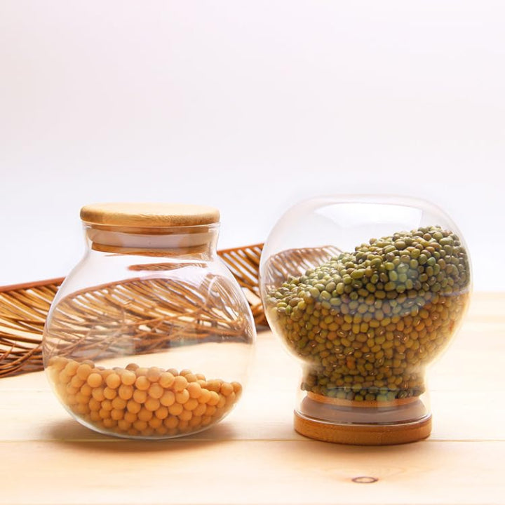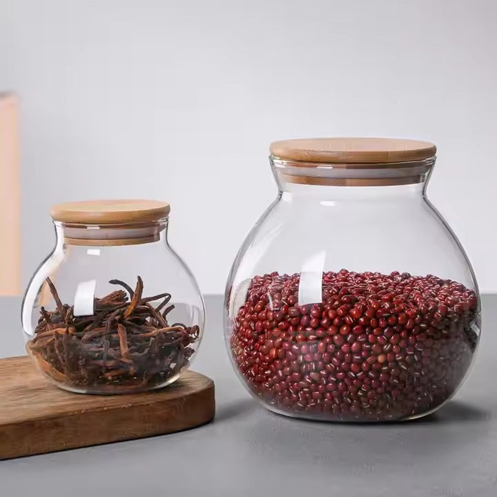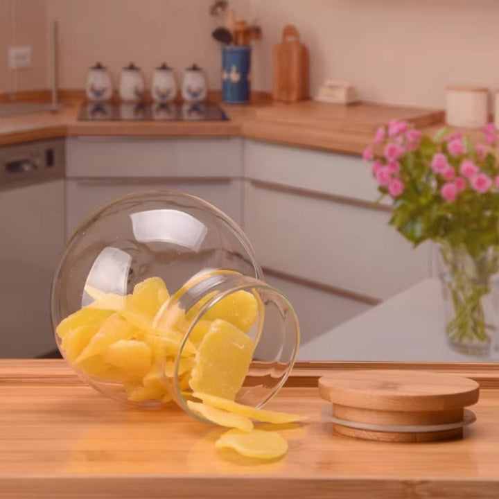 Experience the perfect blend of practical freshness, visual appeal, and natural elegance with our Round Pantry Airtight Glass Display Jars with Wooden Lids.