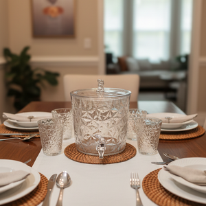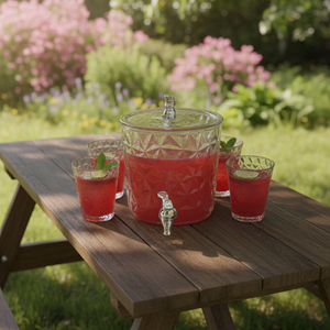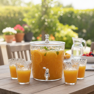 Serve your favorite beverages in style with the Silver Bear Frosted Beverage Dispenser Set. Crafted from high-quality acrylic with a frosted finish, this elegant dispenser brings both functionality and charm to your home, parties, and gatherings. The set includes six matching glasses, making it perfect for family meals, celebrations, or entertaining guests. Its sturdy design, easy-to-use spigot, and frosted look make serving drinks effortless and stylish.