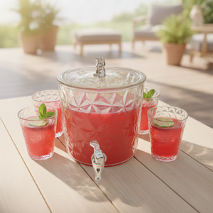 • Complete Set: Includes 1 dispenser + 6 matching glasses.