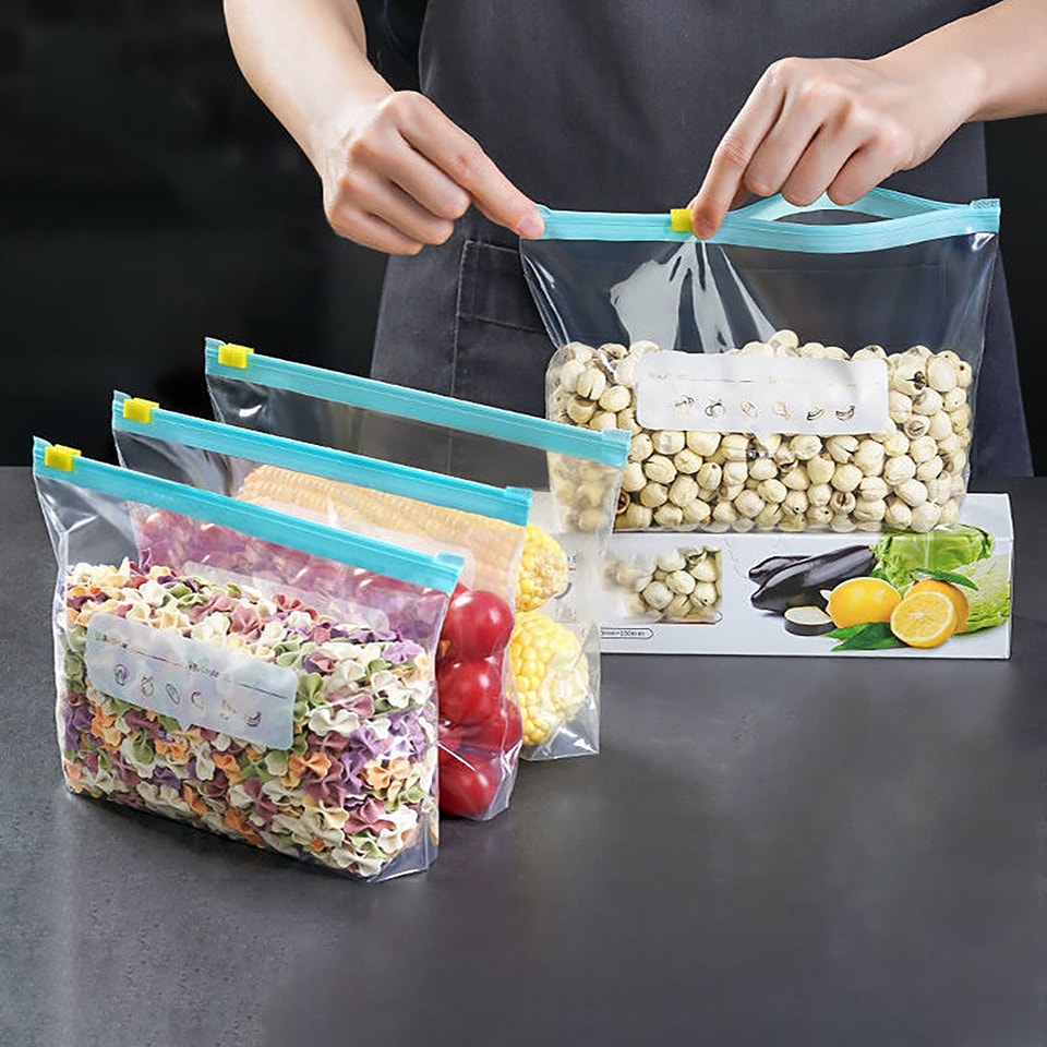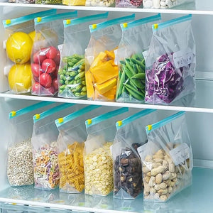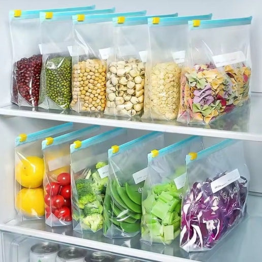 Smart Seal Freezer Bags are designed to lock in freshness and prevent freezer burn with a secure slider zipper. Made from durable, BPA-free material, these bags are freezer-safe, leak-proof, and reusable, making them perfect for food storage and meal prep.